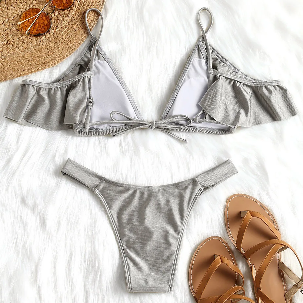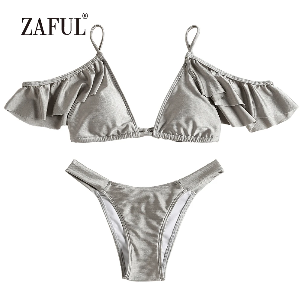 Buy ZAFUL Bikini Siliver Cami Cold Shoulder Flounce Swimwear Women's Spaghetti Straps Padded Ruffle Swi Right Here and Right Now Just for USD US $16.99, Price will be rise up at any time without notification and I cant guaranted that the stock is still available tommorow or next hour. So Please Save It Now!